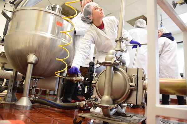 As part of their educational requirements, these students are tasked with producing a wide variety of food products, including jams, jellies, salsas and sauces – all in a processing environment that cannot compromise food quality or safety. The Wilden PS4 pump will play a significant role as the conduit between the manufacturing system’s cooking kettles and filling lines; without it, the students would have to jar their products by hand, a time-consuming and potentially unsanitary process.